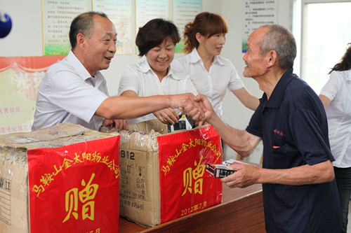 7月1日,金太陽(yáng)物業(yè)管理有限公司黨支部組織公司部分管理人員及部分黨員代表前往和縣姥橋鎮(zhèn)敬老院進(jìn)行結(jié)對(duì)幫扶回報(bào)家鄉(xiāng)的活動(dòng)。姥橋鎮(zhèn)敬老院137位老人高興地接過金太陽(yáng)物業(yè)公司負(fù)責(zé)人送來的收音機(jī)及生活用品。公司負(fù)責(zé)人說,今后,還會(huì)經(jīng)常來看望這里的老人,為他們提供幫助,公司的發(fā)展壯大,更不會(huì)忘記回報(bào)于社會(huì)。