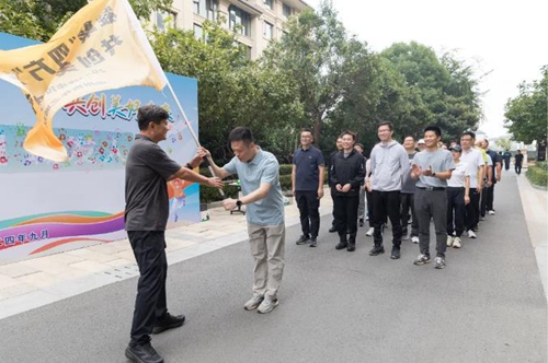 經(jīng)過三個多小時的同行,各隊陸續(xù)順利抵達終點,圓滿完成了13公里的徒步任務。奔赴終點處,各隊旗手分別向集團黨委書記、董事長萬永生遞交了象征著隊魂和榮譽的隊旗,萬董事長接過承載著大團結(jié)大聯(lián)合力量的旗幟,徒步階段圓滿結(jié)束。