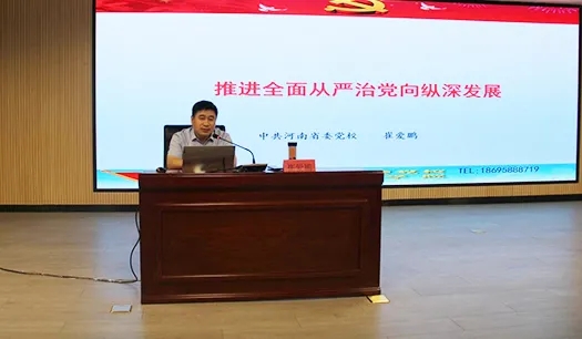 隨后,河南省委黨校崔愛鵬教授作了題為《推進全面從嚴治黨向縱深發(fā)展》的專題培訓。培訓中,崔愛鵬教授從深刻理解新時代全面從嚴治黨向縱深發(fā)展的重大意義、全面把握新時代黨的建設的總要求、貫徹落實習近平總書記關于全面從嚴治黨的重要論述三個方面進行了全面剖析和深入解讀,以史實為依據(jù),深入淺出,娓娓道來,使大家充分認識到,“嚴”是立黨的初心品質,是治黨的鮮明特色,也是強黨的經(jīng)驗優(yōu)勢。堅持從嚴治黨,更是我們黨克服一切艱難險阻、完成歷史使命的重要政治優(yōu)勢,為集團學習黨史、了解黨史,進一步做好黨風廉政建設和作風建設工作提供了指南。
