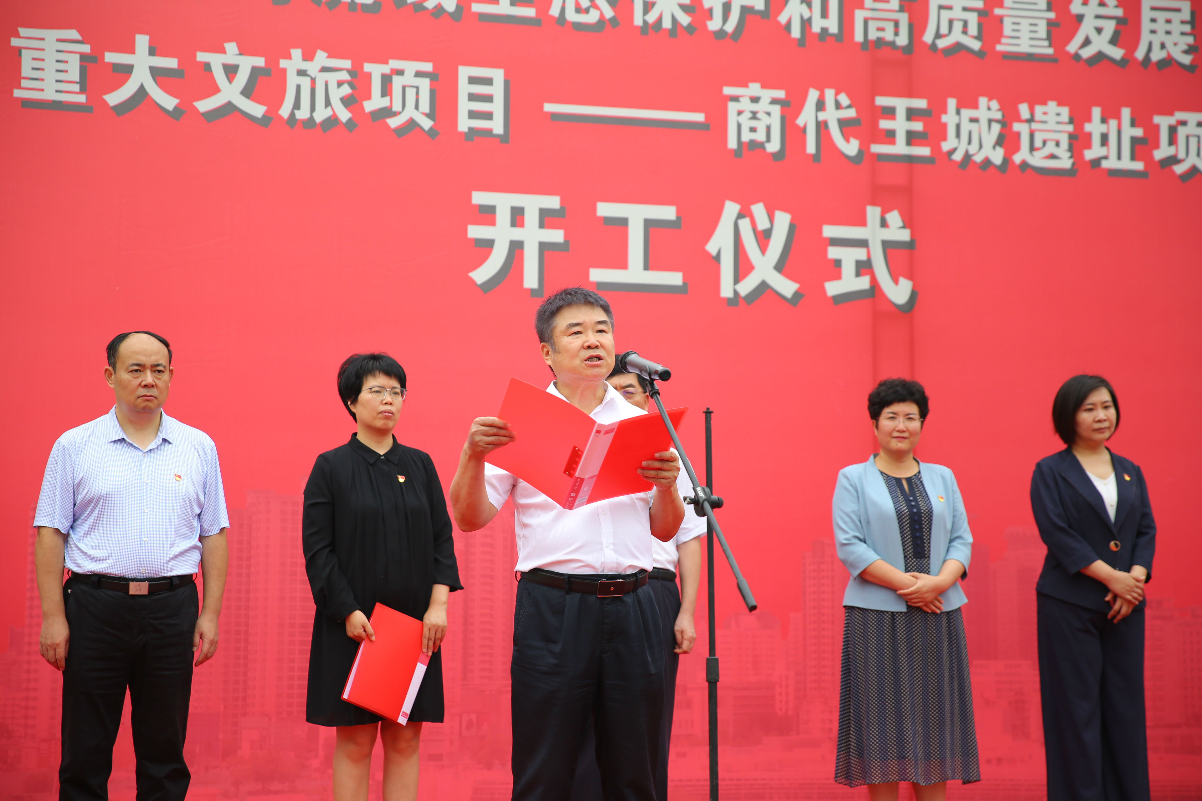 2020年7月24日上午,鄭州市建設(shè)黃河流域生態(tài)保護(hù)和高質(zhì)量發(fā)展核心示范區(qū)重大文旅項(xiàng)目集中開(kāi)工活動(dòng)——商代王城遺址項(xiàng)目開(kāi)工儀式在亳都古巷項(xiàng)目現(xiàn)場(chǎng)舉辦。管城回族區(qū)委副書(shū)記、區(qū)長(zhǎng)張艷敏等區(qū)委區(qū)政府領(lǐng)導(dǎo)出席,商都控股公司黨支部書(shū)記、董事長(zhǎng)牛曉亮應(yīng)邀參加本次活動(dòng)。