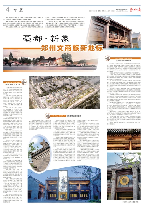 6月18日,“亳都·新象 城市復(fù)興”——2024媒體走進(jìn)亳都活動(dòng)舉辦,傳承鄭州城市文脈,和歷史風(fēng)貌一脈相承,形成了充滿中原特色的文化商業(yè)街區(qū)?,F(xiàn)代的文化商業(yè)場景,融入了本地街巷肌理、空間特色和中原文化元素。歷史與現(xiàn)代在這里相遇,碰撞出獨(dú)一無二的火花。