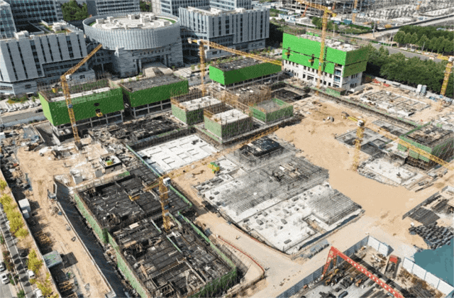 五月的城發(fā)·高新生物經濟產業(yè)園,塔吊繁忙運轉、機械設備轟鳴不斷,工人們有條不紊地進行施工作業(yè),項目建設現(xiàn)場到處一派熱火朝天的繁忙景象。其中,項目一期的主樓工程基本完成,室外配套管網、景觀正在施工中;項目三期的土方、樁基已完成,正在交叉推進正負零和主體施工,部分樓棟已施工至六層。