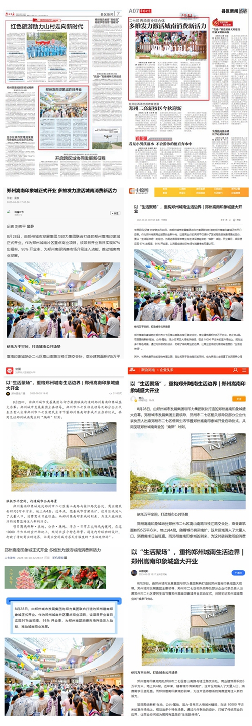8月28日,鄭州城南商業(yè)格局迎來重大變革,由鄭州城市發(fā)展集團(tuán)與印力集團(tuán)攜手打造的鄭州嵩南印象城盛大啟幕,開業(yè)首日客流達(dá)12.6萬人次,迅速成為全城矚目的焦點。這一盛事引發(fā)了各大媒體的廣泛關(guān)注,河南日報客戶端、頂端新聞、大象新聞、大河報、大河網(wǎng)、映象網(wǎng)、河南經(jīng)濟(jì)報、鄭州日報、鄭州晚報、鄭州廣播電視臺等媒體紛紛聚焦,對其開業(yè)進(jìn)行了全方位、多角度的報道。