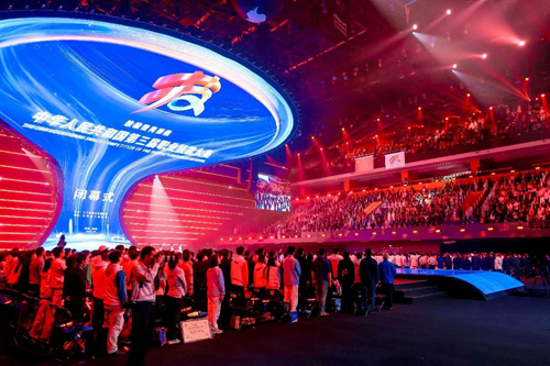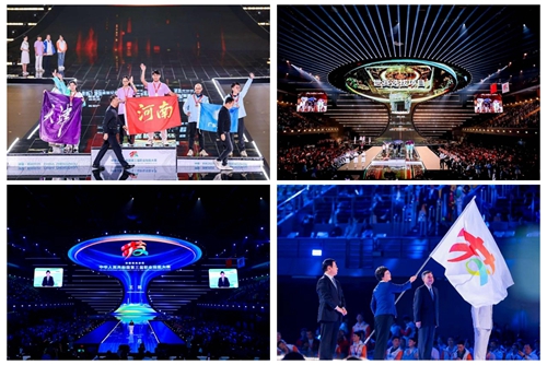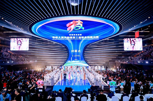 華燈璀璨,掌聲如潮。9月23日晚,當(dāng)348名獲獎選手高舉隊旗與獎?wù)?,?dāng)大賽會旗在璀璨的舞臺上完成交接傳遞,當(dāng)良渚文化和人形機(jī)器人在現(xiàn)場8000余名觀眾的歡呼聲中共舞……中華人民共和國第三屆職業(yè)技能大賽閉幕式在鄭州奧體中心體育館完美落幕!