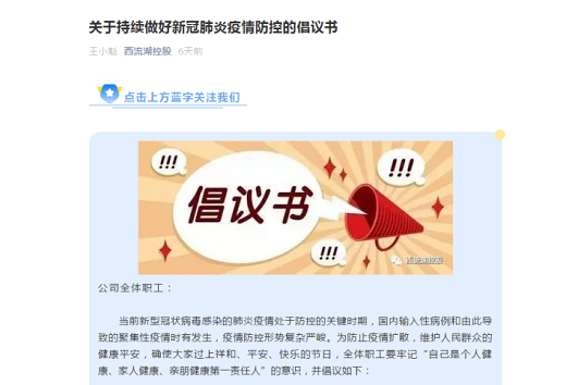 利用疫情防控專題會議、部門例會、通知、倡議書等形式加強疫情防控宣傳力度,及時、準確地宣傳防治信息,普及防治知識,引導(dǎo)職工科學(xué)參與疫情防控。