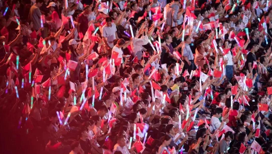 當(dāng)“我愛(ài)你中國(guó)”的字幕點(diǎn)亮全場(chǎng)的氣氛沸騰到了最高點(diǎn),絢爛的禮花綻放夜空,鄭州奧體中心變成歡樂(lè)的海洋。