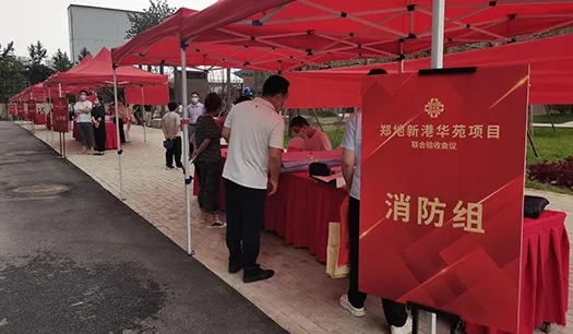 鄭地新港華苑項(xiàng)目于2021年8月26日下午,順利完成由鄭州市城建局牽頭組織,人防、消防、質(zhì)監(jiān)、規(guī)劃等部門共同參與的聯(lián)合驗(yàn)收,是疫情期間第一個(gè)通過聯(lián)合驗(yàn)收的建設(shè)項(xiàng)目。為嚴(yán)格落實(shí)鄭州市新冠肺炎疫情的防控要求,新港華苑項(xiàng)目部提前制定了周密的疫情防控方案,采取了妥善的疫情防控措施,有序組織進(jìn)入院區(qū)人員掃健康碼、檢查48小時(shí)核酸檢測(cè)結(jié)果、測(cè)量體溫、酒精消殺、分發(fā)防疫包等。經(jīng)過啟動(dòng)儀式、書面匯報(bào)、現(xiàn)場(chǎng)巡查、聯(lián)動(dòng)測(cè)試等環(huán)節(jié),鄭地新港華苑項(xiàng)目順利完成聯(lián)合驗(yàn)收工作。