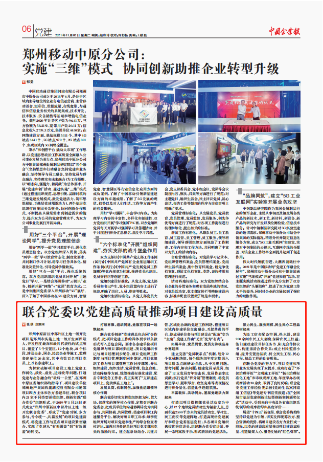 西流湖公司黨建工作先進(jìn)經(jīng)驗(yàn)被 《中國(guó)企業(yè)報(bào)》刊載宣傳