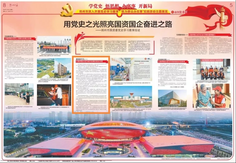 剛剛過去的2021年是我們黨建黨一百周年。在建黨百年的重要時刻,黨中央深謀遠(yuǎn)慮,鑒往知來,在全黨深入開展黨史學(xué)習(xí)教育活動,從百年黨史中汲取新時代趕考路的智慧和力量。1月25日,鄭州市深入開展黨史學(xué)習(xí)教育“我為群眾辦實事”實踐活動主題展覽之市國資委篇《用黨史之光照亮國資國企奮進之路--鄭州市國資委黨史學(xué)習(xí)教育綜述》被《鄭州日報》刊發(fā)、《人民日報》客戶端轉(zhuǎn)載。